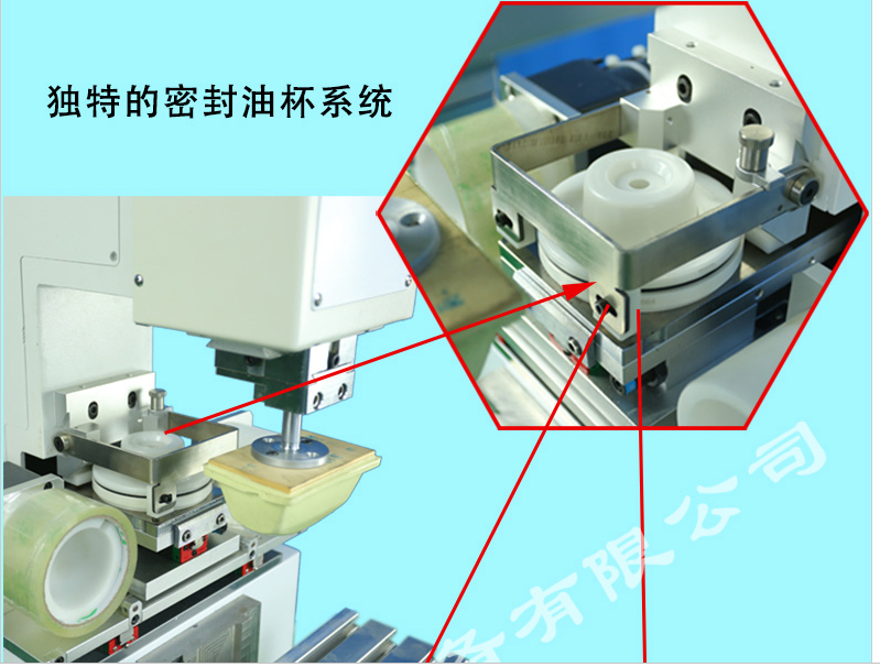 所示),印刷油墨倒在一個開放式的油墨盤中,而油盅式移印機的印刷油墨工作時是完全封閉在油盅里(如圖5 -10